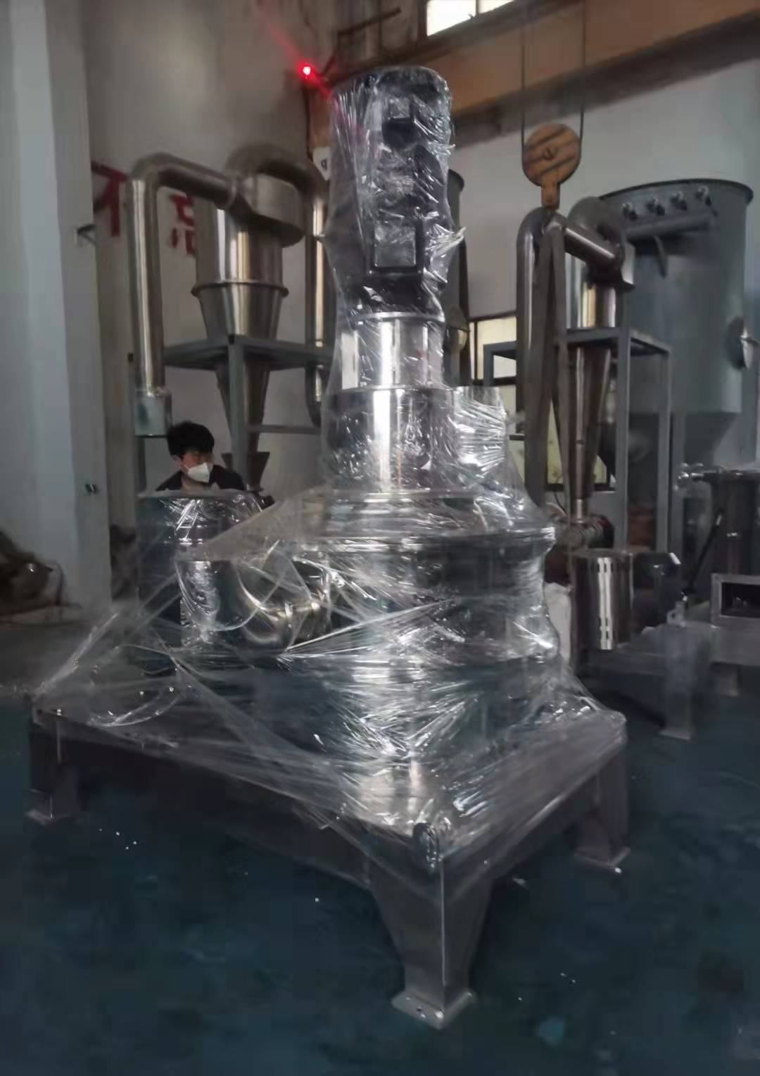 風(fēng)冷低溫粉碎機(jī)是一款不銹鋼材質(zhì)的粉碎機(jī)。微納低溫粉碎機(jī)門上裝有固定齒盤,固定齒盤上裝有一圈帶鋼齒的固定齒圈。主軸上裝有活動齒盤,活動齒盤上裝有活動牙齒?;顒育X盤上的活動牙齒與固定齒圈相互交錯排列。當(dāng)主軸高速運(yùn)轉(zhuǎn)時,活動齒盤也同時運(yùn)轉(zhuǎn)。進(jìn)入粉碎室內(nèi)的物料,在物料與齒及物料彼此間的相互沖擊、剪切、磨擦等綜合作用下獲得粉碎。成品經(jīng)篩網(wǎng)過篩后,由粉碎室進(jìn)入收集袋,粗料繼續(xù)粉碎??蛻艨梢愿鶕?jù)不同產(chǎn)成品的細(xì)度要求更換不同細(xì)度的篩網(wǎng)。